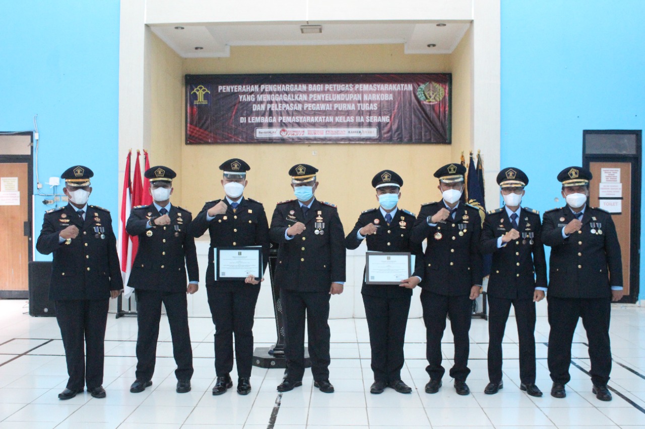 SERANG – Lembaga Pemasyarakatan (Lapas) Kelas IIA Serang Kanwil Kemenkumham Banten menggelar kegiatan Pelepasan Pegawai yang Memasuki Masa Purna Tugas dan Penyerahan Penghargaan Pegawai Yang Berhasil Menggagalkan Penyelundupan Narkoba. Rabu (27/04)