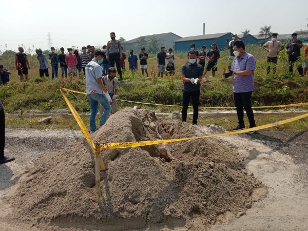 “Ketika akan mengambil pasir, mereka melihat ada sedikit bungkusan karpet dan mengeluarkan bau bangkai dari tumpukan pasir,” ujar Kasat Reskrim AKP David Adhi Kusuma, Selasa (27/7/2021).