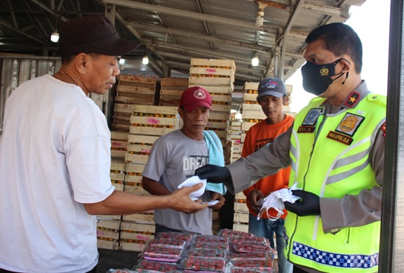 “Ayo selalu pakai masker ya. Dengan menggunakan masker, akan terlindungi dari penularan Covid-19. Maskermu melindungi aku dan maskerku melindungi kamu,” kata Ery Nursatari saat berdialog dengan para pedagang di Pasar.