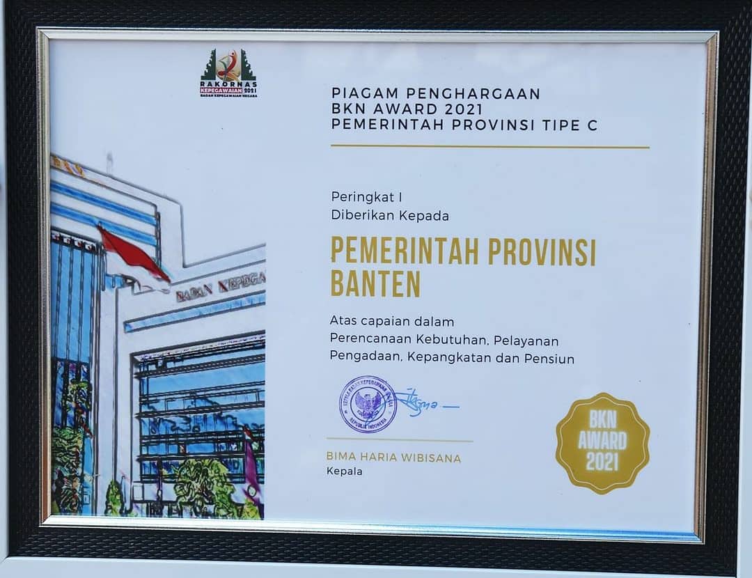 Sebagai informasi, BKN Award 2021 yang digelar secara daring pada 1 Juli 2021 lalu, Pemprov Banten meraih 4 penghargaan. Pemprov Banten berhasil meraih empat (4) penghargaan dalam manajemen Aparatur Sipil Negara (ASN).