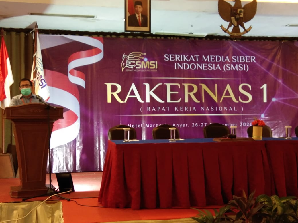 BANTEN – Wakil Ketua Dewan Pers Hendry CH Bangun turut membuka Rakernas I Serikat Media Siber Indonesia (SMSI) di Hotel Marbella Anyer, Serang, Banten, Sabtu (26/9/2020).
