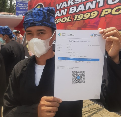 Narman (30) salah satu warga yang tinggal di daerah baduy luar Kp. Marengo Kec. Leuwidamar Kab. Lebak mengapresiasi kegiatan vaksinasi yang diselenggarakan oleh Alumni Akpol 99.