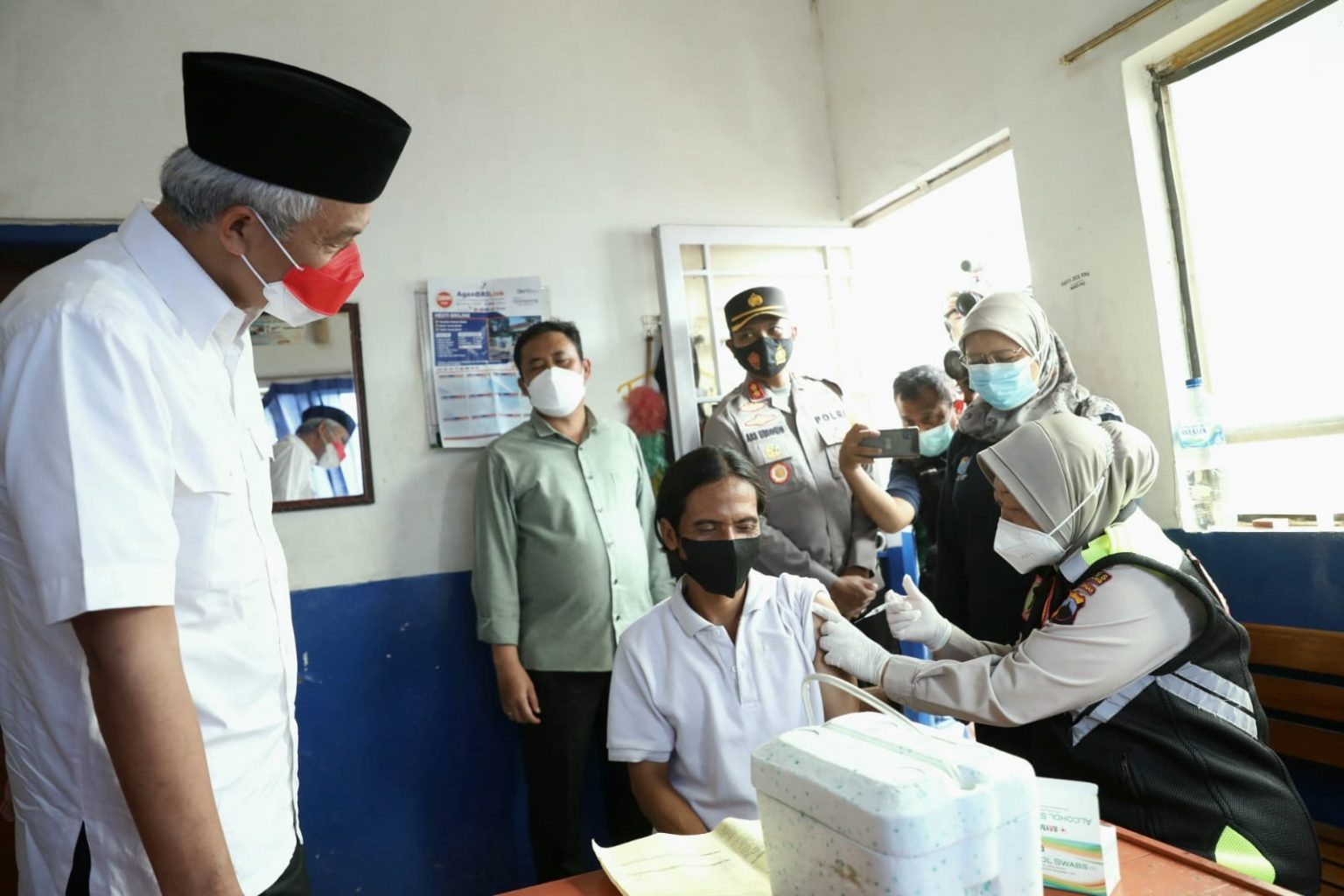 PEMALANG – Gubernur Jawa Tengah Ganjar Pranowo mengapresiasi inisiatif Polres Pemalang yang menyiapkan gerai vaksinasi di Pos Lalu Lintas Pemalang. Di gerai ini, warga bisa datang malam hari untuk menerima vaksin.