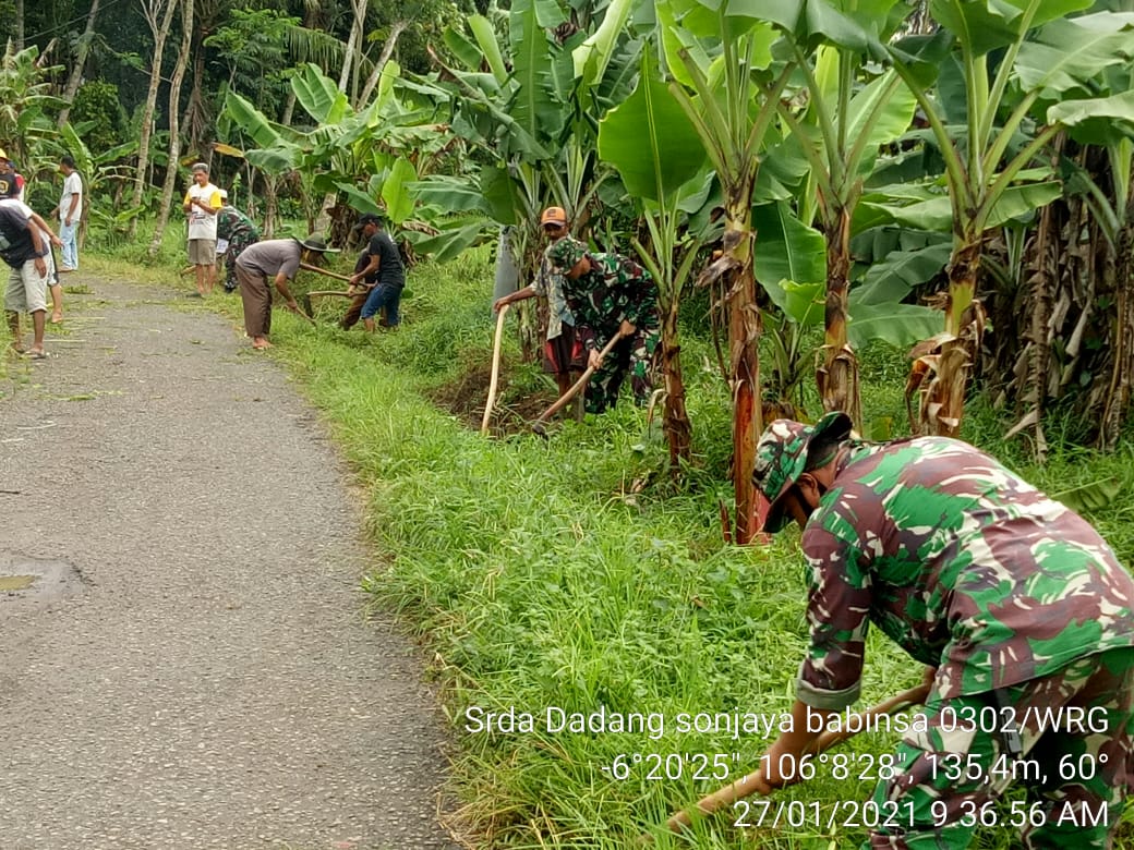 SIBERINDO.CO-Anggota Koramil 0302 Warunggunung, Kodim 0603 Lebak, bersama puluhan warga dan masyarakat, menggelar aksi bersih-bersih lingkungan dalam rangka Kegiatan Pembinaan Kemampuan Teritorial (Binpuanter) Satuan Komando non Wilayah dari anggota Yonif 320/BP.