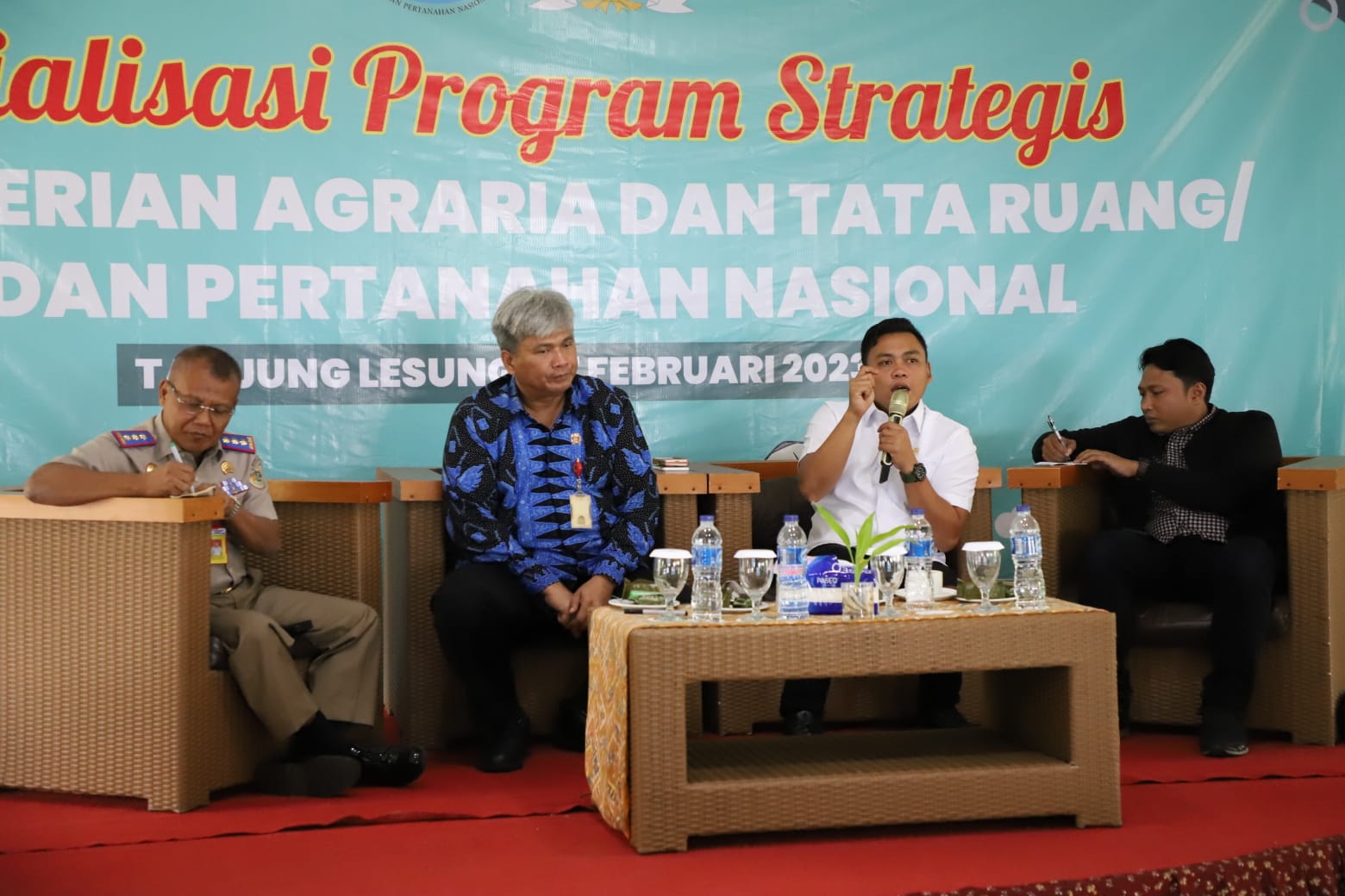 Kepala Kantor Wilayah BPN Provinsi Banten Rudi Rubijaya di kesempatan yang sama mengucapkan terima kasih atas dukungan dari Komisi II DPR RI kegiatan sosialisasi ini dapat terlaksana. Rudi menuturkan Kementerian ATR/BPN terus melakukan sosialisasi program, “Kegiatan penyuluhan atau sosialisasi PTSL memang terbatas dilakukan di desa lokasi PTSL, sosialisasi program lainnya melalui media sosial, media massa, melalui _talkshow_ dengan radio, _podcast_ juga terus kami lakukan,” tutur Rudi.