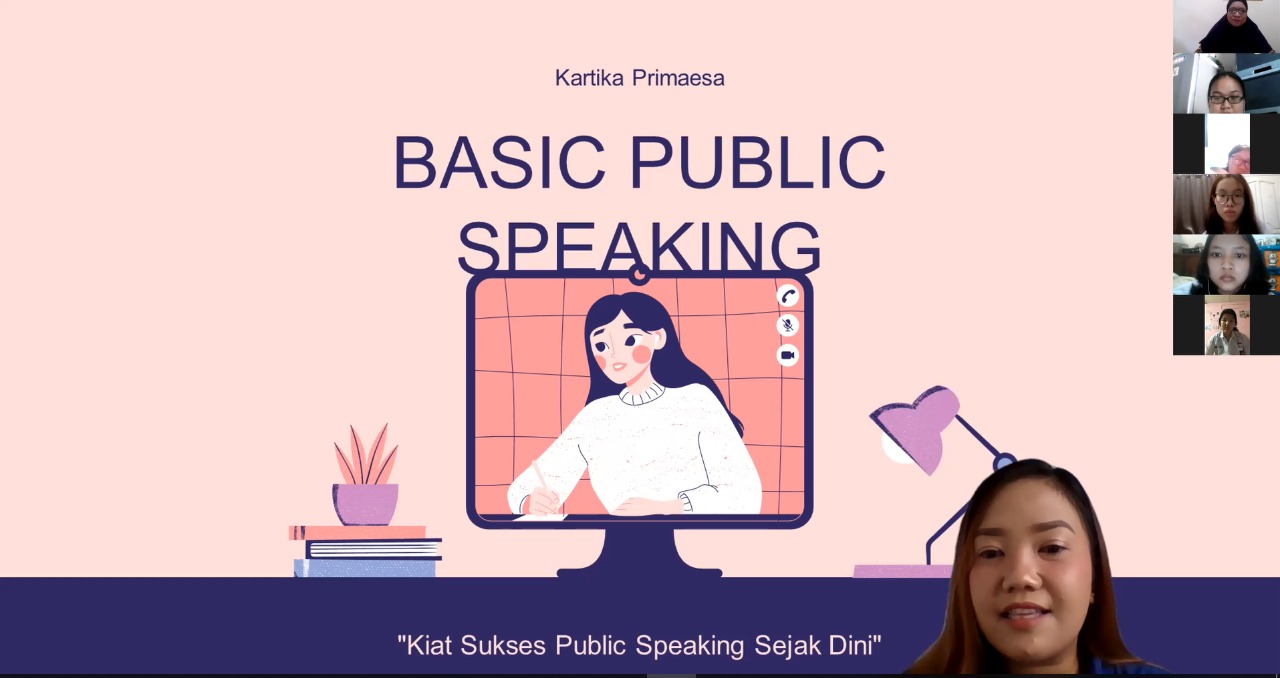 Pelatihan ini dilakukan secara daring dengan durasi 120 menit, menghadirkan trainer professional yang ahli dalam bidang Public Speaking yang juga merupakan salah satu mahasiswi Universitas Mercu Buana jurusan ilmu komunikasi.