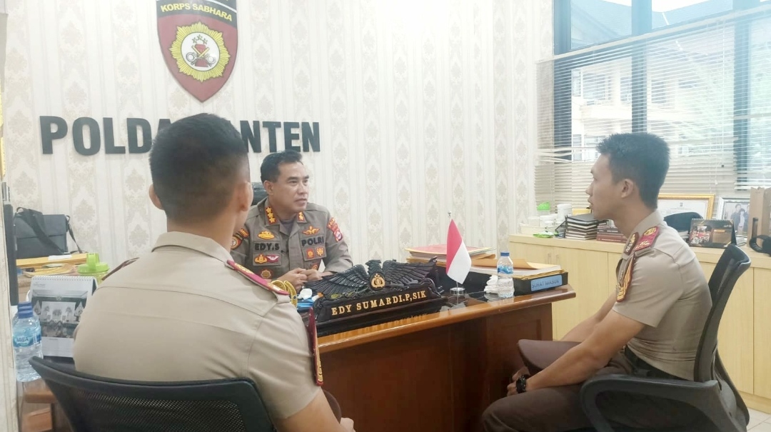 siberindo.co – Dirpamobvit Polda Banten Kombes Pol Edy Sumardi Priadinata terima kunjungan dua taruna Akademi Kepolisian (Akpol) di ruang kerjanya. Jumat, (28/04).