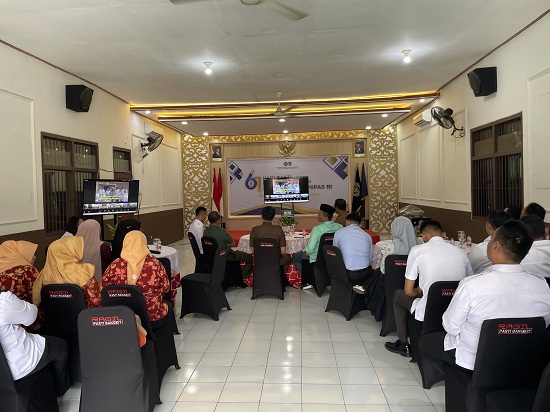 Pasuruan – Dalam rangka memperingati Hari Bhakti Pemasyarakatan (HBP) Ke-61 tahun 2025, Rumah Tahanan Negara Kelas IIB Bangil mengikuti kegiatan tasyakuran secara virtual melalui Zoom Meeting, pada Senin (28/04). Kegiatan ini berlangsung di aula utama Rutan Bangil dan diikuti oleh seluruh pegawai, anggota Forkopimda Kabupaten Pasuruan, serta Ibu-ibu dari PIPAS Cabang Rutan Bangil. Tasyakuran nasional ini diselenggarakan langsung dari Graha Bhakti Pemasyarakatan Lantai 6 Direktorat Jenderal Pemasyarakatan.