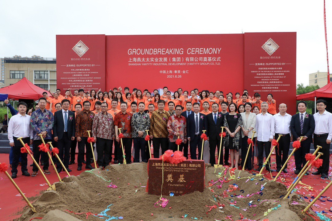 ​Shanghai, RRT – Bertempat di kawasan industri Fengxian District, Shanghai, Duta Besar RI untuk RRT dan Mongolia, Djauhari Oratmangun didampingi Konjen RI, Deny W. Kurnia bersama Chairman & CEO Yantyty Group Co.,Ltd, Rudy Foniaty dan Lily Foniaty, pada pagi hari ini, Sabtu, 26 Juni 2021, hadir dalam acara groundbreaking pembangunan food processing industry Sarang Burung Walet (SBW) Indonesia – Yantyty Group Co. Ltd., di kota Shanghai.