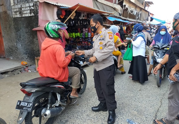 LEBAK – Guna memutus rantai penyebaran Corona Virus Desease (Covid-19), Kepolisian Sektor (Polsek Wanasalam) yang dipimpimpin langsung olek Kapoksek Wanasalam AKP Sudedi membagikan masker di Pasar Binuangeun, Desa Muara, Kecamatan Wanasalam, Kabupaten Lebak, Provinsi Banten, pada Pukul 07.00 WIB Rabu (28/7/2021) Dikutip Bungasbanten.id – Group siberindo.co