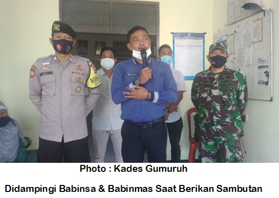 “ Sedangkan dalam penyaluran bantuan ini dan melaksanakan vaksin di laksanakan di kantor kepemerintahan desa Gumuruh dan dihadiri dari pihak Babinkamtibmas, Babinsa, Kanit intel, Ekbang kecamatan dan PLD desa “  sehingga pihak Muspika sangat mengapresiasi pada pihak desa yang telah baik menerapkan protokol kesehatan bahkan dalam penyaluran bantuan ini pihak desa menggunakan sistem per RT agar tidak berkerumun dan tetap menjaga jarak.