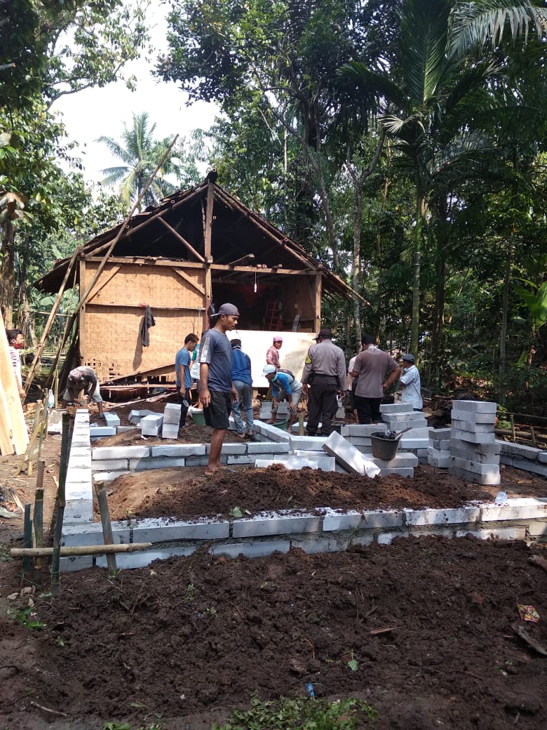 Sabtu (26/9) Kepala Desa Sumurbandung, Mulyadi melakukan peletakan batu pertama pembangunan rumah tersebut.