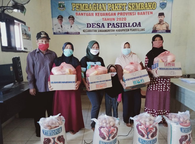 PANDEGLANG – Dimasa pandemi covid 19 pemerintah provinsi Banten salurkan beberapa bantuan untuk masyarakat dalam hal ini Pemerintahan desa ( Pemdes) Pasirloa kecamatan Sindangresmi kabupaten Pandeglang provinsi Banten telah menyalurkan paket sembako sumber dana dari Bantuan Provinsi ( Banprov) Banten bertempat di kantor desa Pasirloa, Sabtu (24/10/2020)