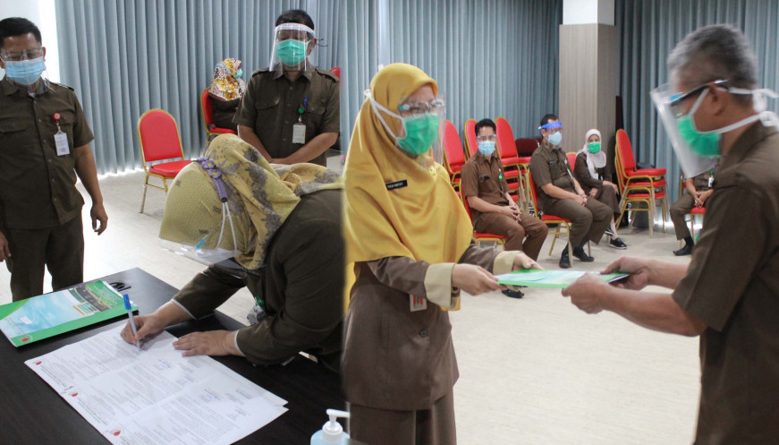 Acara serah terima jabatan merupakan rangkaian dari pengambilan sumpah jabatan Pejabat Eselon III, IV dan Administrator di lingkungan Pemerintah Kabupaten Tangerang pada tanggal 21 Oktober 2020.