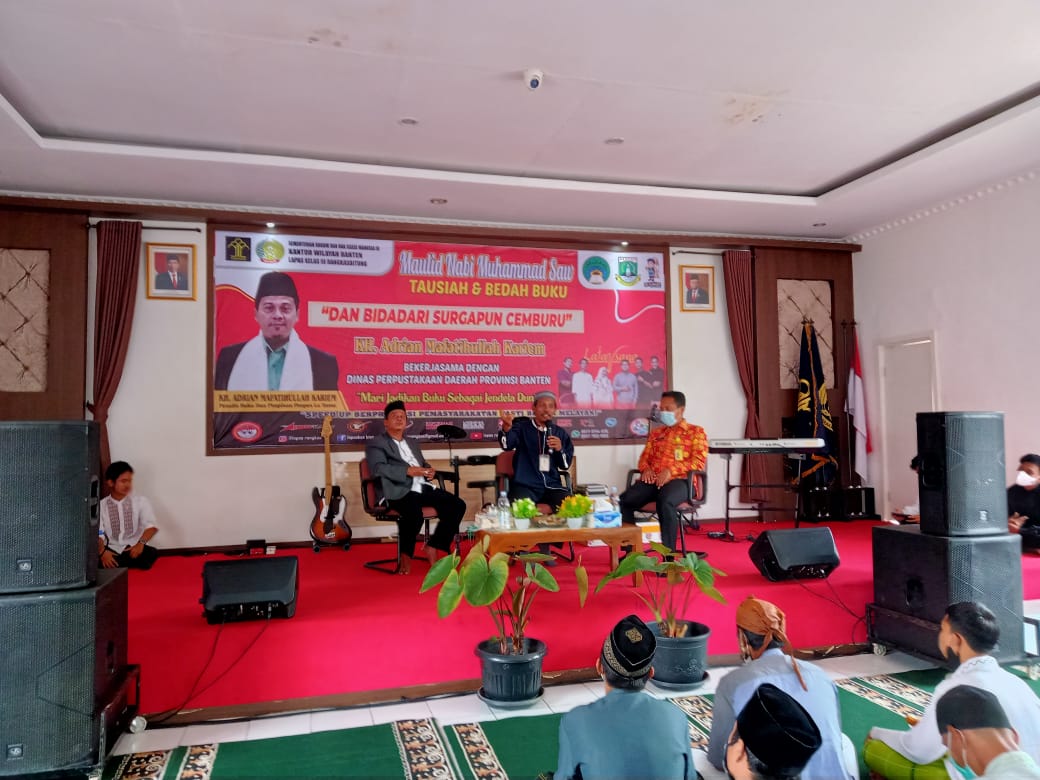 RANGKASBITUNG – Lembaga Pemasyarakatan (Lapas) Kelas III Rangkasbitung kembali mendapat kehormatan, kali ini Dinas Perpustakaan Provinsi Banten menunjuk untuk melakukan bedah buku “Dan Bidadari Surgapun Cemburu” karangan Kh. Adrian Mafatihullah Kariem terbitan Penerbit Republika bertempat di Aula Lapas, Kamis (28/10).