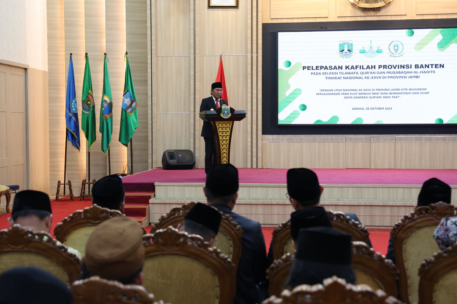siberido.co – Penjabat (Pj) Gubernur Banten Al Muktabar melepas Kafilah Provinsi Banten pada Seleksi Tilawatil Qur’an dan Musabaqah Al-Hadits (STQH) Tingkat Nasional ke-XXVII Tahun 2023 yang berlangsung di Provinsi Jambi. Al Muktabar berharap Kafilah Provinsi Banten dapat memberikan hasil yang terbaik.