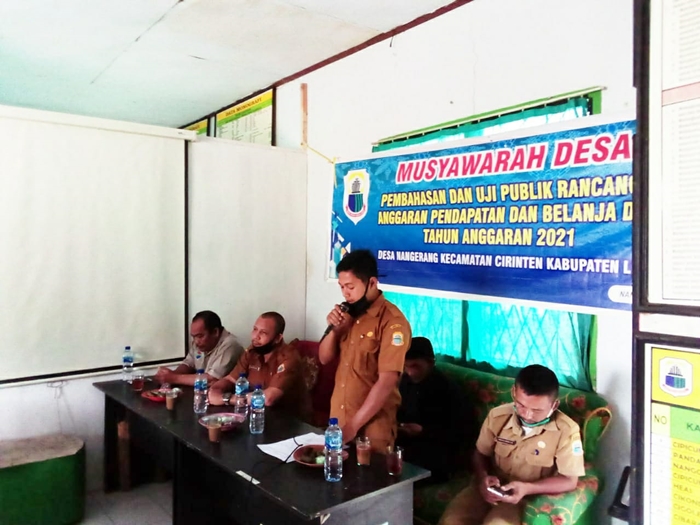 Siberindo.co – Pemerintah Desa Nangerang di akhir tahun 2020 membahas Musyawarah desa (Musdes) dengan pembahasan dan uji publik rancangan anggaran pendapatan dan belanja desa Tahun 2021. Acara berlangsung di Aula Kantor Desa Nangerang, Kecamatan Cirinten, Kabupaten Lebak, Senin (28/12/2020). Hadir dalam acara tersebut Pihak Kecamatan Cirinten, Tokoh Masyarakat, Lembaga Desa, RT/ RW, dan Para Kiyai Desa.