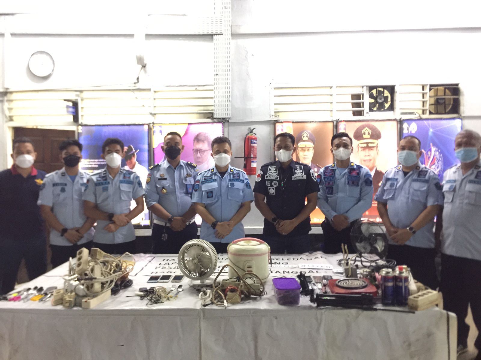 Adapun barang-barang terlarang yang berhasil di sita para petugas diantaranya Barang Elektronik seperti Kabel, Terminal, Handphone, Kipas Angin, dan barang-barang yang dilarang berda di dalam blok hunian warga binaan.