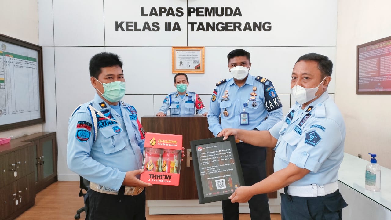 Fire Extinguisher adalah alat pemadam api ringan yang dapat memadamkan api dengan cairan yang terdapat didalam botol fire extinguisher. Sebanyak 20 (dua puluh) botol fire extinguisher disebar ke beberapa titik vital di area Lapas Pemuda, seperti Pos Jaga Blok Hunian, Pos Kepala Regu Pengamanan, P2U, Pos Wasrik, serta dapur Lapas Pemuda Kelas IIA Tangerang.