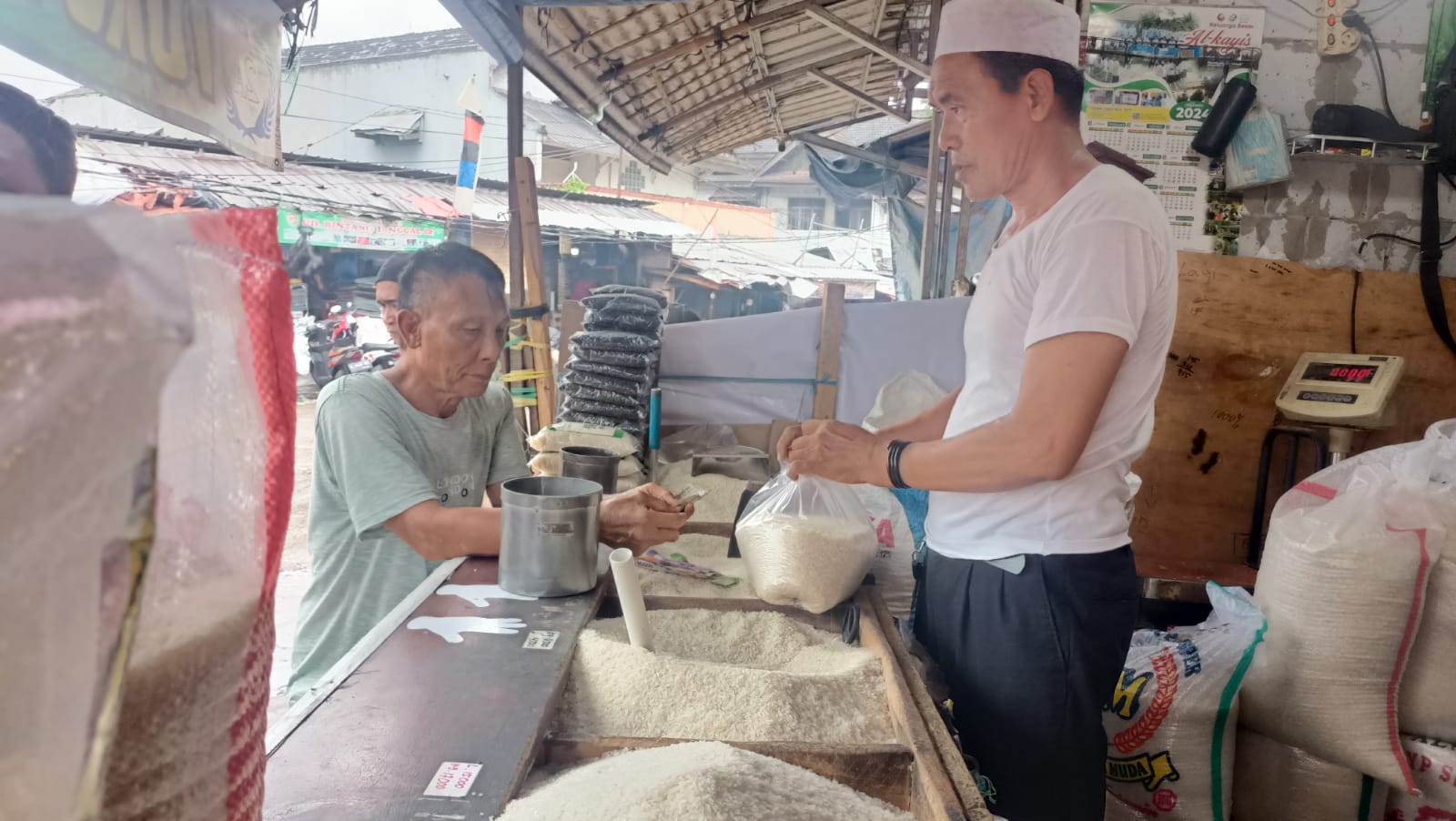 “Alhamdulillah harga beras sudah turun sejak seminggu ini. Biasanya kan beli (beras-red) Rp. 15.000-Rp. 16.000 per kilogram, sekarang sudah Rp. 13.500 per kilogram. Penurunan ini dikarenakan adanya bantuan dari pemerintah,” kata H. Bukhari yang merupakan pemilik Toko Beras 2A.