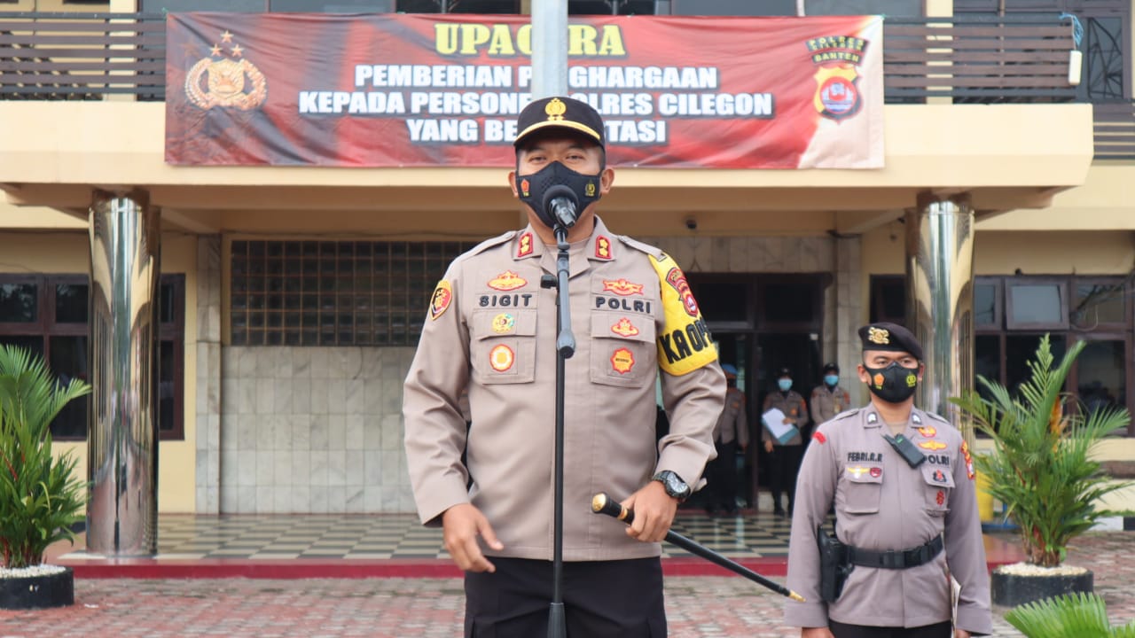 Kapolres Cilegon AKBP SIGIT HARIYONO, S.IK, S.H. menjelaskan Penghargaan dari Bupati Serang diberikan kepada Personel Satreksrim Polres Cilegon dalam rangka penanganan kasus tindak pidana korupsi pengelolaan keuangan desa tahun anggaran 2020.