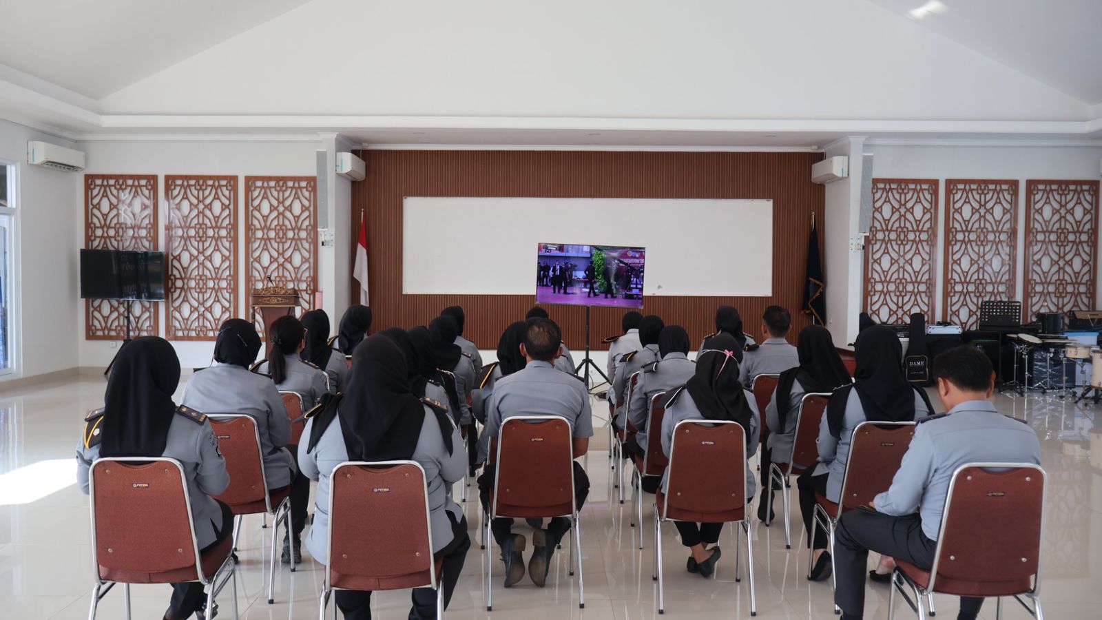 Bertempat di Aula Lapas, Kalapas Perempuan Tangerang, Prihartati beserta jajaran melalui Kanal YouTube PAS TV mengikuti Upacara Hari Bakti Pemasyarakatan Ke-60 yang dilaksanakan secara terpusat di Lapangan Kementerian Hukum dan Hak Asasi Manusia Republik Indonesia.