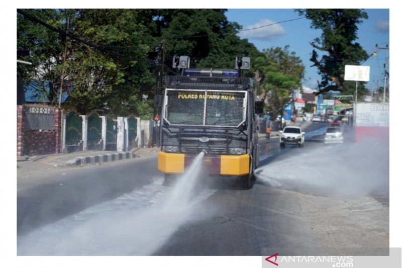 “Kegiatan penyemprotan cairan disinfektan ini dilakukan oleh Polres Kupang Kota dengan menggunakan satu unit kendaraan water canon dan dikawal oleh satu unit kendaraan Sat Sabhara. Ini dilakukan dalam rangka mencegah penyebaran Covid-19 di wilayah Kota Kupang,” kata Kabid humas Polda NTT Kombes Pol Rishian Krisna B kepada wartawan di Kupang, Selasa.
