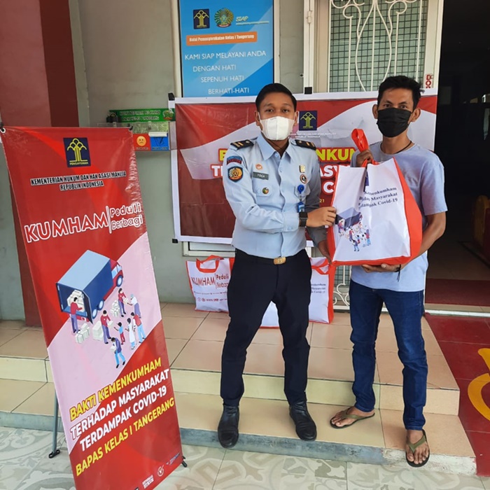 Terkait hal tersebut, Bapas Kelas I Tangerang berpartisipasi menyalurkan bantuan sembako kepada masyarakat sekitar.