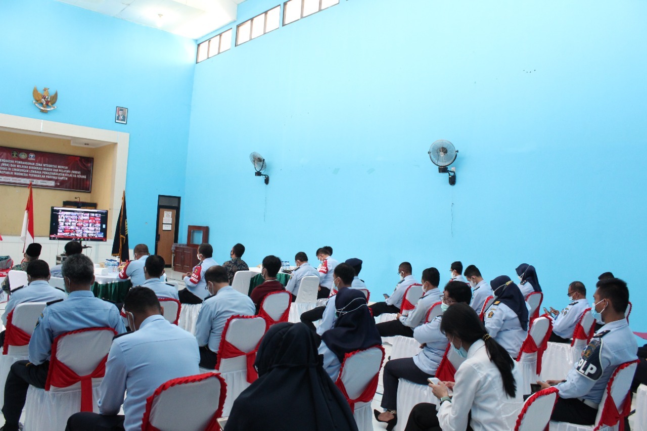 Lembaga Pemasyarakatan (Lapas) Kelas IIA Serang mengikuti Zoom Virtual bersama Mentri Hukum dan HAM RI Yasonna H Laoly, kegiatan tersebut dalam rangka Bakti Kemenkumham Terhadap masyarakat terdampak Covid-19.