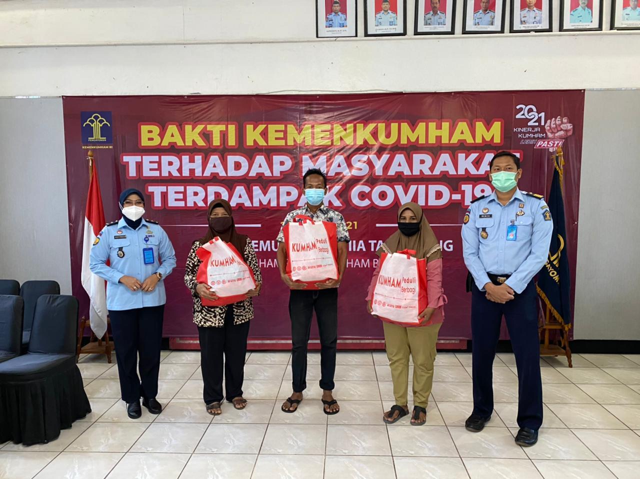 Sebagai bagian dari Kementerian Hukum dan Hak Asasi Manusia RI yang berada di bawah naungan Kanwil Kemenkumham Banten, Lapas Pemuda Kelas IIA Tangerang turut berpartisipasi dalam Bakti Sosial bertajuk “Bakti Kemenkumham Terhadap Masyarakat Terdampak Covid-19” ini.