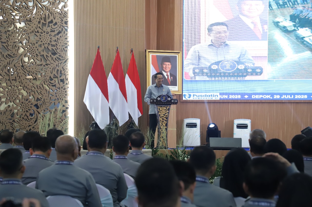 Depok – Menteri Hukum, Supratman Andi Agtas, meresmikan Gedung Auditorium Pengayoman Pancasila pada pembukaan Rapat Koordinasi Pengendalian Kinerja Semester I Kementerian Hukum yang digelar di lingkungan BPSDM Hukum.