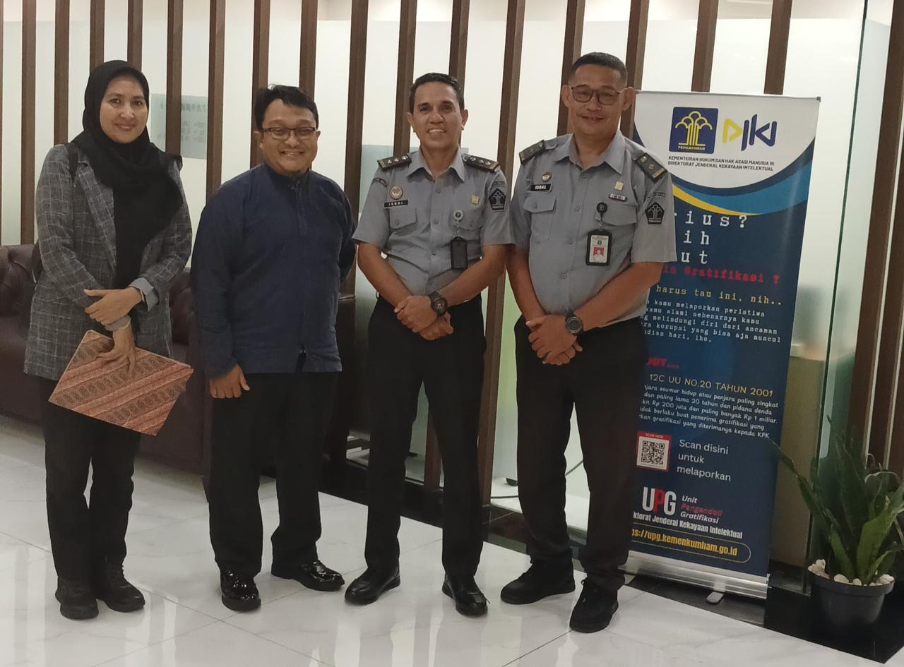 Analis Kekayaan Intelektual Madya, M. Ikbal dan Analis KI Muda, M. Iqbal saat bertemu Pemeriksa Merek Utama DJKI, Surya menyampaikan beberapa kendala di wilayah Malut terkait pendaftaran merek. Khususnya dalam memitigasi terjadinya ditolaknya pendaftaran merek.