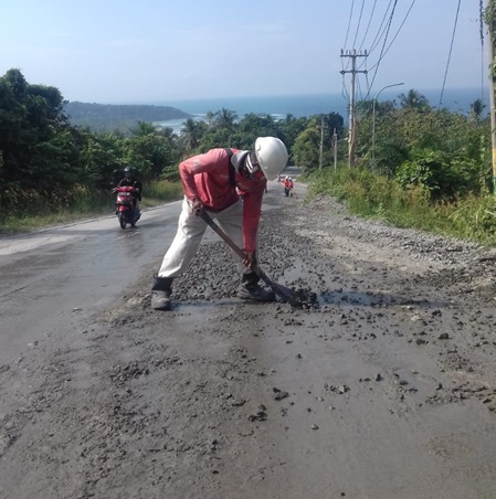 LEBAK – PT Cemindo gemilang selaku produsen semen merk merah putih yang berlokasi di desa Darmasari kecamatan Bayah kabupaten Lebak provinsi Banten melalui CSR nya telah membersihkan jalan nasional tepat nya jalan Pamubulan Cikatomas