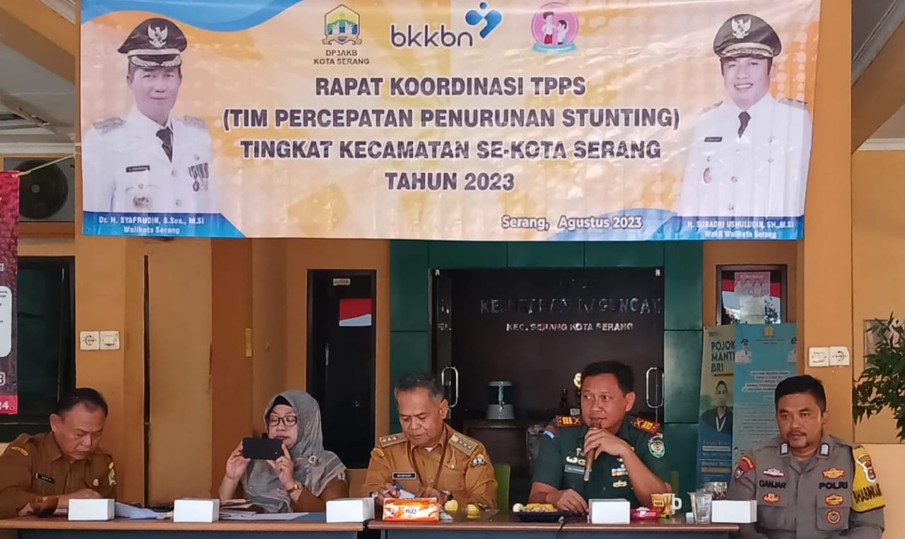 SIBERINDO.CO – Komandan Koramil (Danramil) 0602-01/Kota Serang Kodim 0602/Serang Kapten Inf Edi Purnomo, menghadiri kegiatan rapat koordinasi Tim Percepatan Penurunan Stunting (TPPS) Tahun 2023 tingkat Kota Serang, bertempat di Kantor Kelurahan Kagungan Kecamatan Serang Kota Serang Provinsi Banten, Selasa (29/08/2023).