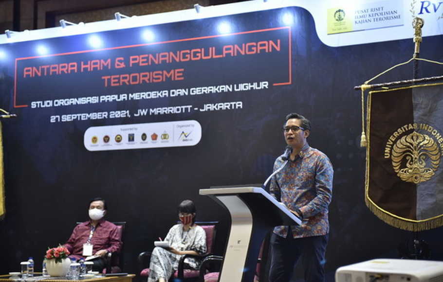 Hal itu dikatakan Kepala Detasemen Khusus 88 Antiteror Polri Irjen Marthinus Hukom, saat seminar mengenai HAM dan Penanggulangan Terorisme di Hotel J.W Marriott, Senin (27/9/2021). Seminar yang diselenggarakan oleh Pusat Riset Ilmu Kepolisian dan Kajian Terorisme (PRIK KT) SKSG UI dan Revera Institute mengangkat tema “Antara HAM dan Penanggulangan Terorisme: Studi Organisasi Papua Merdeka dan Gerakan Uighur”.