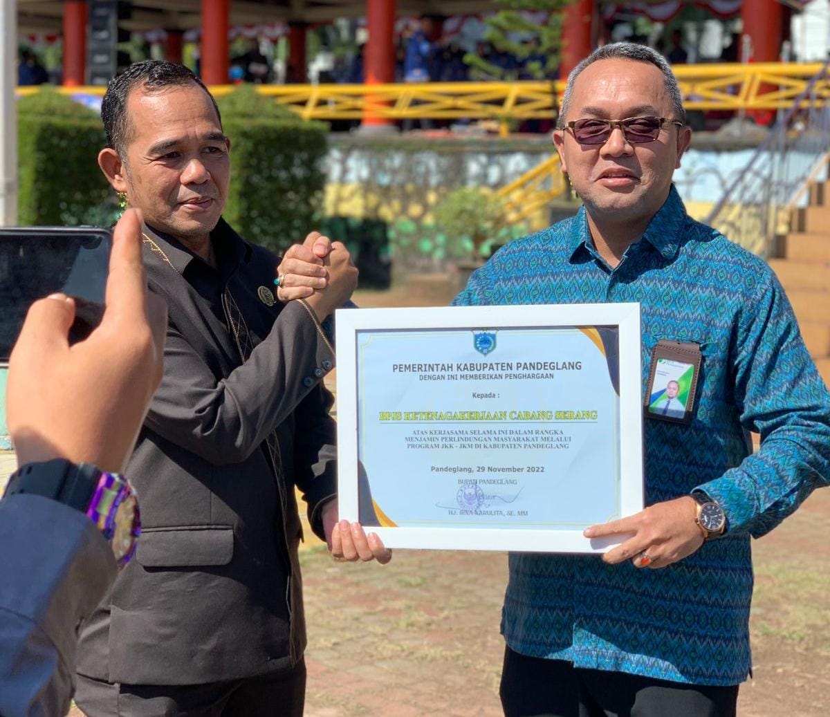 Kepala BPJS Ketenagakerjaan Serang Menerima Penghargaan Dari Bupati Pandeglang