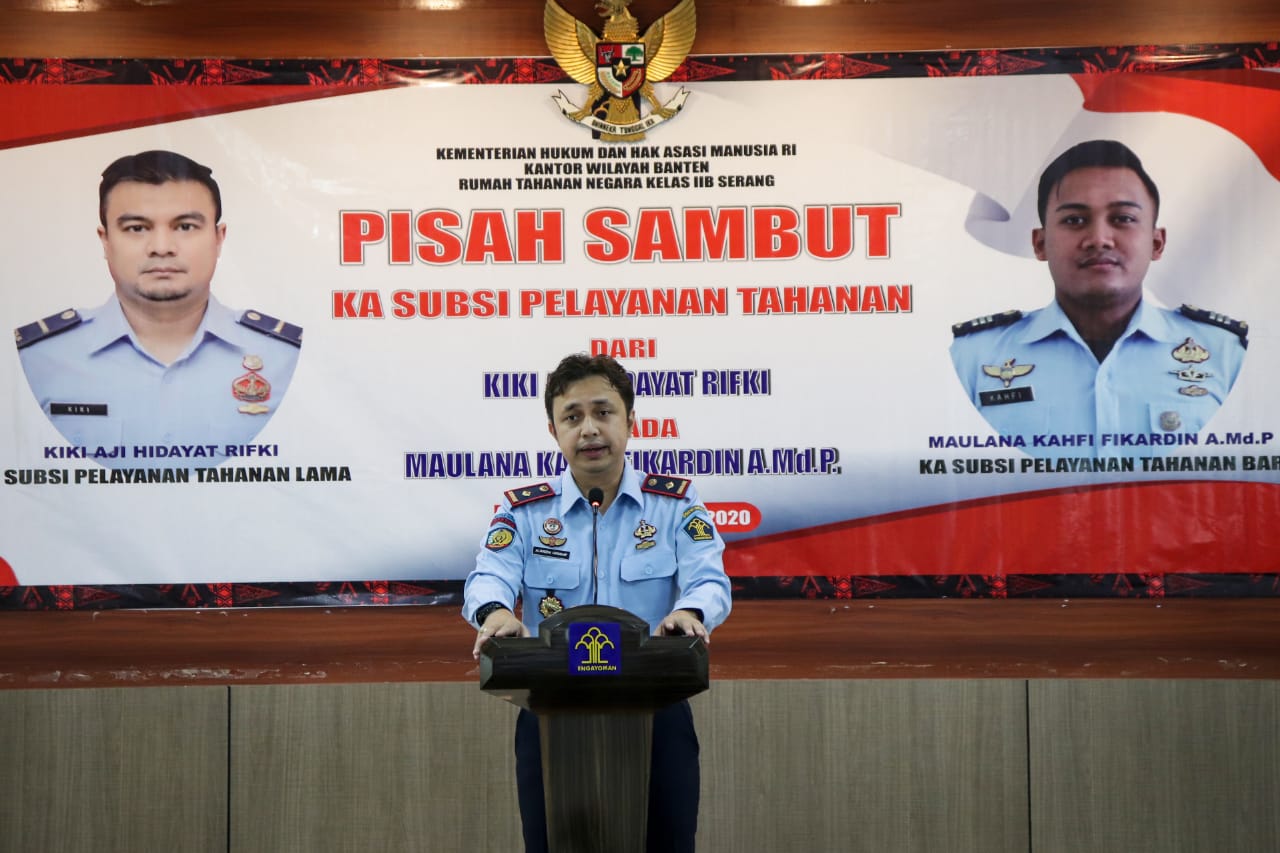 Kali ini, Kasubsi Pelayanan Tahanan Rutan Serang Kembali diganti, dari Kiki Aji Hidayat Rifki kepada Maulana Khafi Fikardin, Amd.IP yang dilaksanakan secara sederhana dengan tetap mematuhi protokol kesehatan yang bertempat di Aula Dr. Sahardjo Rutan Serang, Senin (28/12).