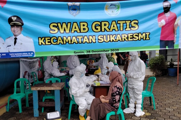 ” Maka dengan di adakan test Swab ini untuk mengetahui seberapa luas penyebaran covid 19 di kecamatan Sukaresmi dan diketahuinya penyebaran virus Corona kita melakukan langkah-langkah upaya penyebaran virus Covid-19 dapat di pantau dan dapat dikurangi penyebarannya dengan 3M. “ Yaitu Mencuci tangan, memakai masker, menjaga jarak “ Terang Survelen PKM Perdana Rani Gunawan * (A.BAHRI)