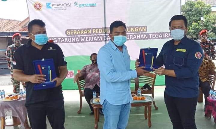 Bantuan tersebut diserahkan Ketua Karang Taruna Khairul Anwar kepada Ketua RT Abdul Hadi dengan didampingi Ahmad Sofiyan selaku Direktur PT Eira Antero Prima (Enterma) Direktur PT Multi Sentana Baja (MSB) Andre Hotmah Tinambunan dan Camat Ciwandan Agus Ariyadi serta Tokoh Masyarakat link Lijajar Abdul Muhit yang bertempat di Lapangan Badminton link Lijajar, Kelurahan Tegalratu.