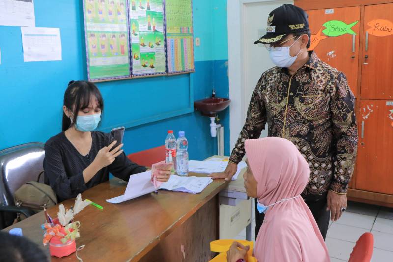 Selain SMPN 32, Wakil juga meninjau penyaluran Bantuan Sosial Tunai yang berlangsung di SDN Gondrong 1, Cipondoh dimana dalam proses penyaluran BST menerapkan protokol kesehatan pencegahan Covid-19 4M.