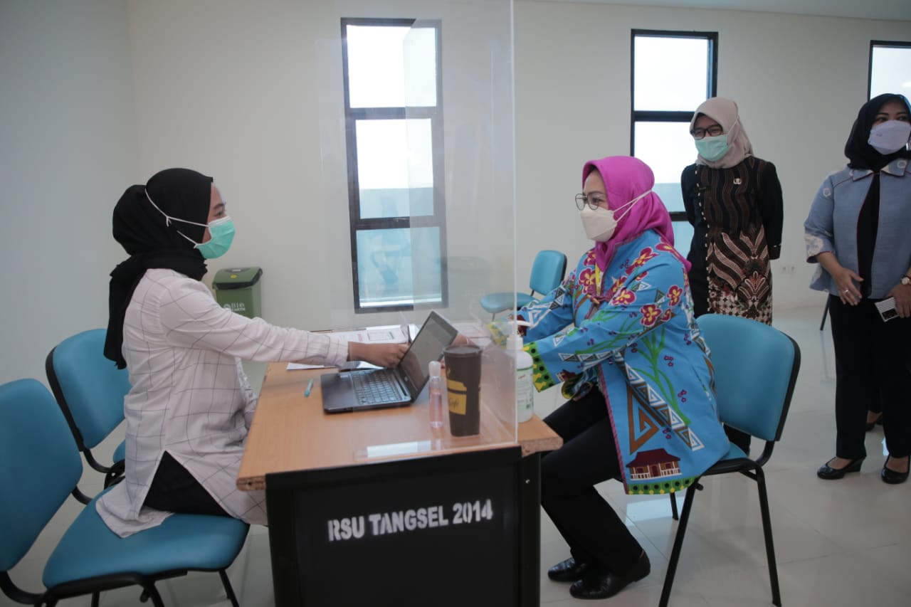 Kemudian setelah menerima vaksin tersebut, Airin melanjutkan tahapan menuju meja empat. Pada meja ini seluruh penerima vaksin akan diobservasi untuk memastikan tidak ada efek samping yang berdampak pada tubuh penerima vaksin.