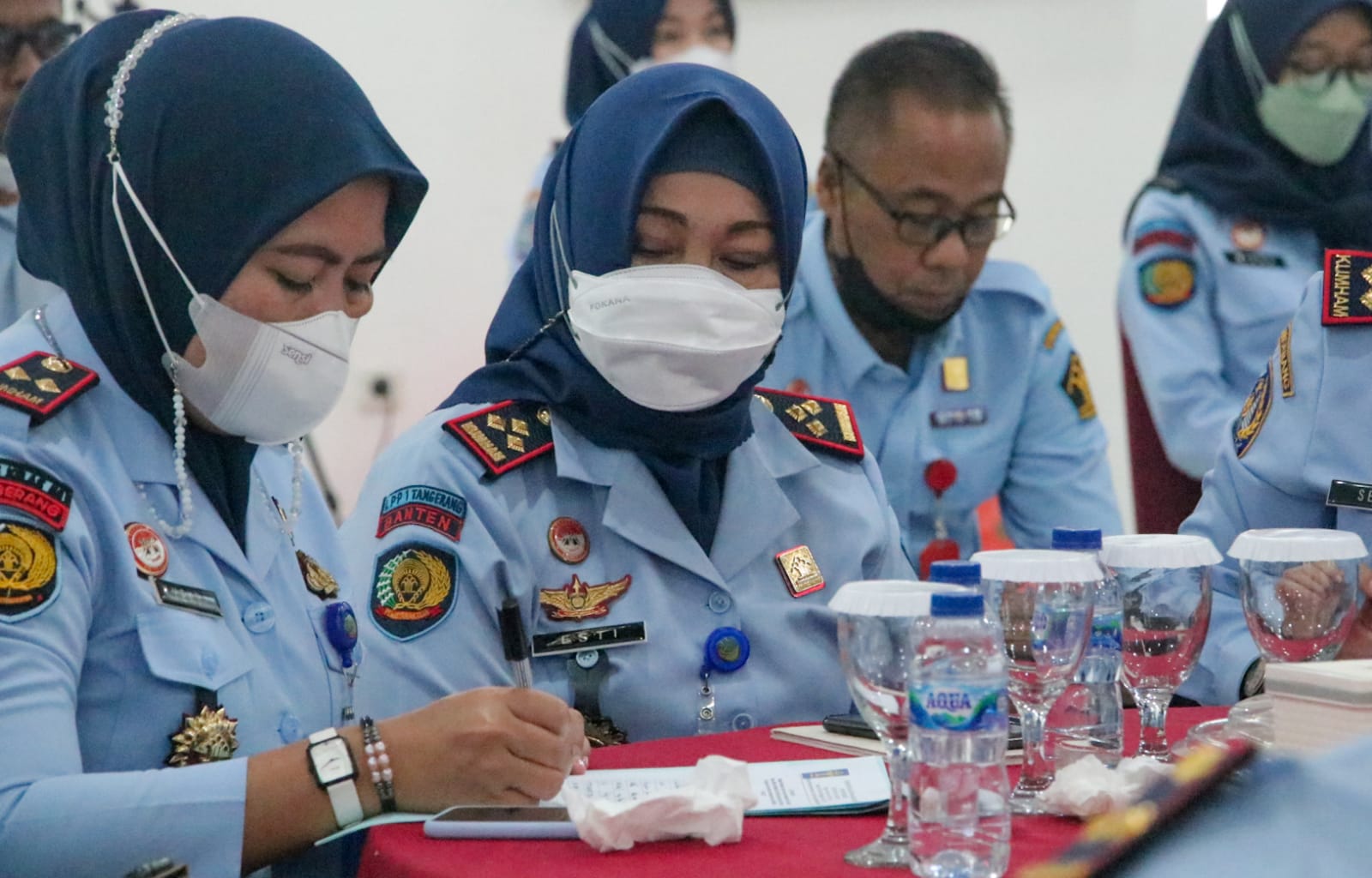 SERANG – Kepala Lapas Perempuan Tangerang Esti Wahyuningsih bersama Ketua Zona Integritas mengikuti Kegiatan Pembinaan Target Kinerja dan Pembangunan Zona Integritas menuju WBK/WBBM oleh Staf Ahli Menteri Bidang Hubungan Antar Lembaga Dr. Dhahana Putra yang bertempat di Aula Lantai III Kantor Wilayah Kemenkumham Banten. Rabu (30/03/2022).