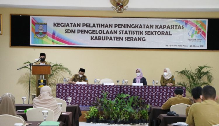 Hal itu disampaikan Entus saat memberikan sambutan pada acara Pelatihan peningkatan kapasitas SDM pengelolaan statistik sektoral tahun 2021 yang digelar Diskominfostika Kabupaten Serang di Jayakarta Hotel Kecamatan Anyar. Hadir juga Kepala Diskominfosatik Kabupaten Serang, Anas Dwi Satya Prasadya, Plt Sekretaris Diskominfosatik, Hartono.