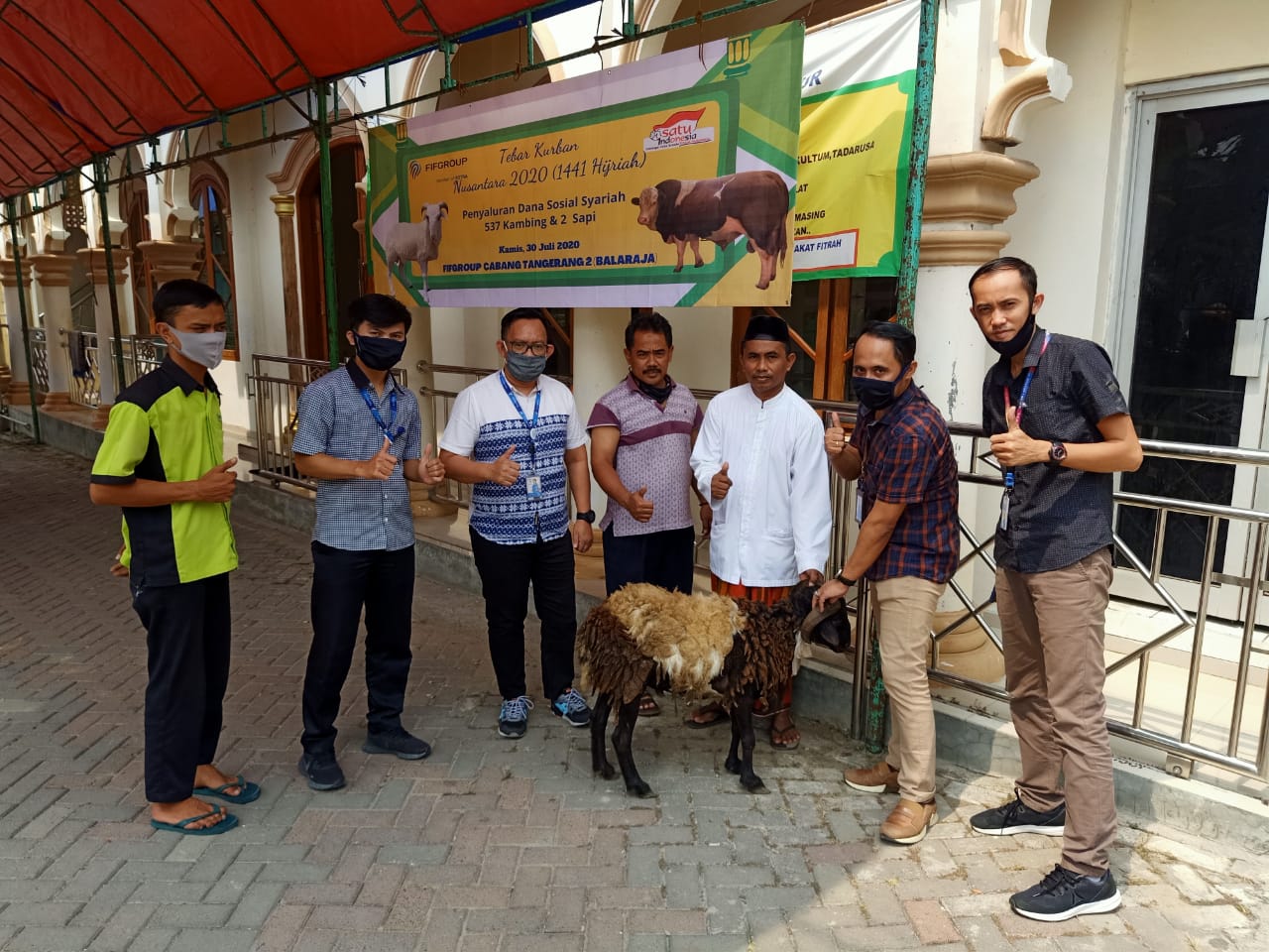 FIF GROUP menyumbangkan 535 ekor kambing untuk masyarakat sekitar kantor cabang. Kegiatan ini dilaksanakan pada Jum’at, (31/7/2020). bertempat di Mushollah Nurul Islam, RT 03 Kelurahan Talagasari Kecamatan Balaraja Kabupaten Tangerang dan Masjid Miftahussudur Jalan Cendrawasih Raya RT 03 RW 08 Taman Balaraja Desa Parahu Kecamatan Sukamulya Kabupaten Tangerang.