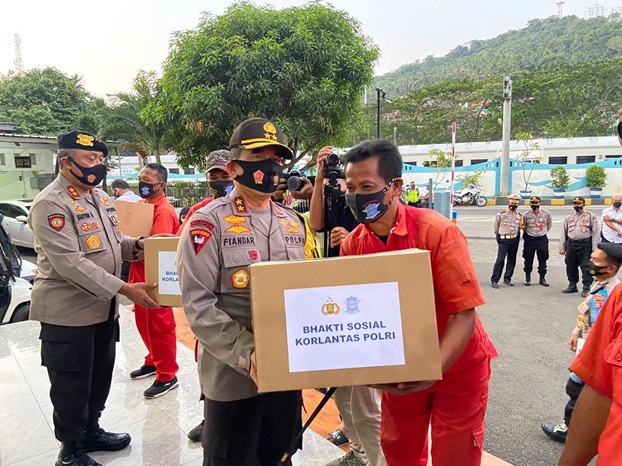 Kakor Lantas Polri irjen Istiono juga menyempatkan memberikan bantuan paket Sembako pada puluhan Porter yang ada di Pelabuhan merak sebagai bentuk kepedulian terhadap mereka di masa Pandemi Covid-19 ini.