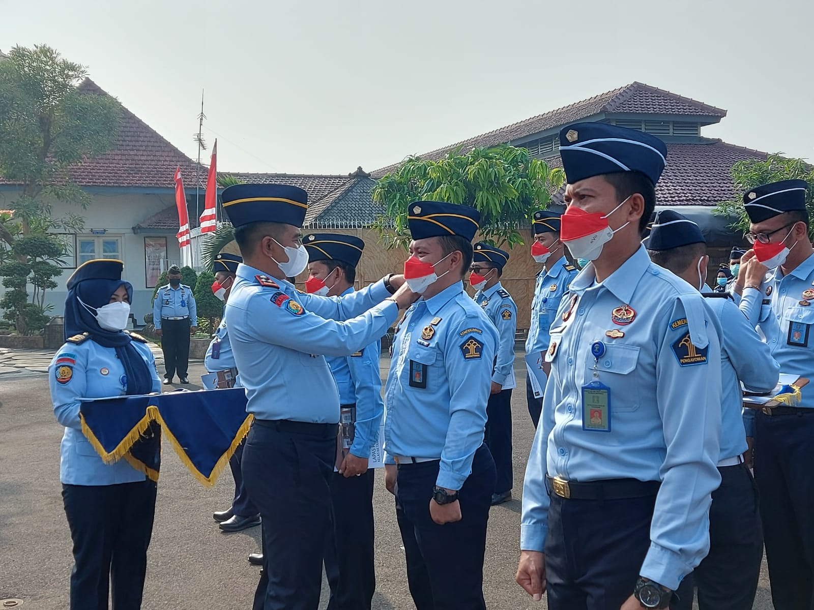 TANGERANG,- Lembaga Pemasyarakatan (Lapas) Pemuda Kelas IIA Tangerang menggelar apel pagi sekaligus pelantikan kenaikan pangkat bagi 13 pegawai. Penyematan Kenaikan Pangkat dilakukan langsung oleh Kadek Anton Budiharta selaku Kepala Lapas Pemuda Kelas IIA Tangerang. Apel dilaksanakan di lapangan upacara dan diikuti oleh seluruh Pejabat Struktural dan seluruh pegawai Lapas Pemuda Kelas IIA Tangerang. Senin (30/08/2021).