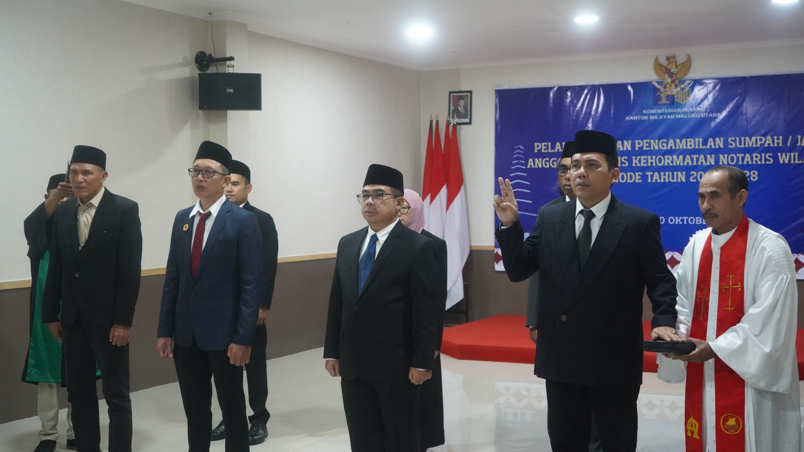 Selain Kakanwil, Kepala Divisi Pelayanan Hukum, Chusni Thamrin, bersama lima orang anggota lainnya turut dikukuhkan sebagai Anggota MKNW Malut dari unsur notaris dan akademis.