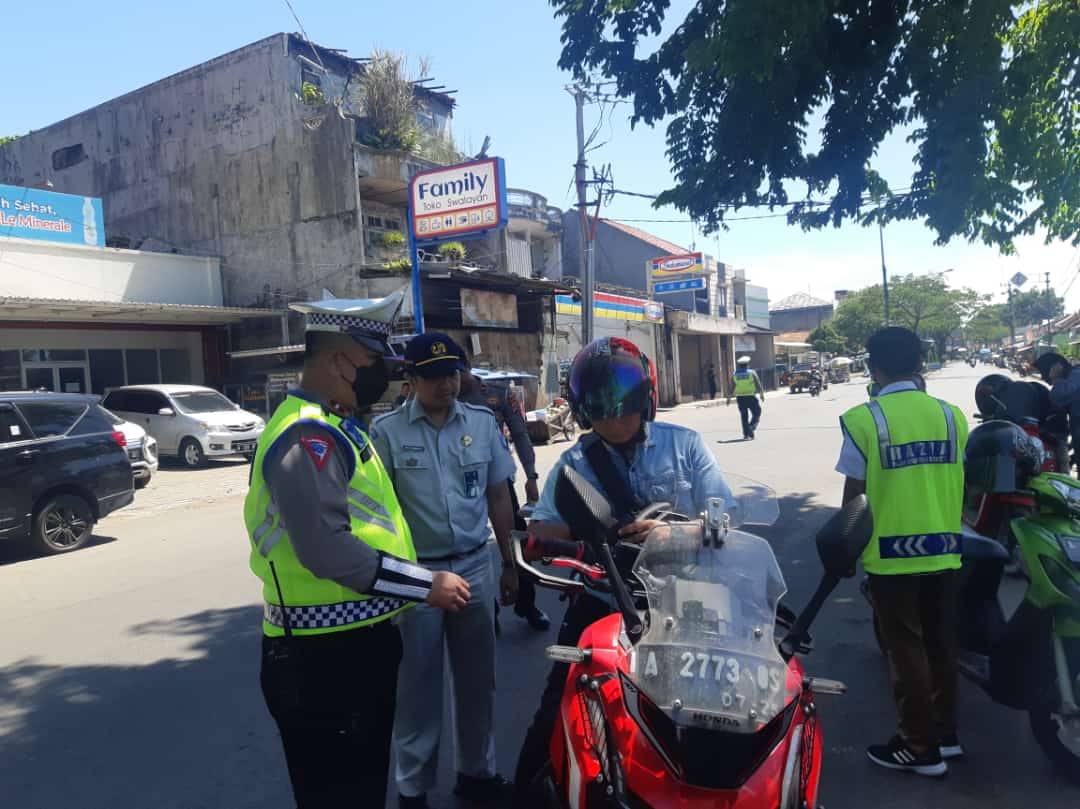 LEBAK – Petugas Jasa Raharja Cabang Banten Samsat Lebak Adytia Nugraha dan Samsat Maja Abi Rizki beserta Kasi Penerimaan UPTD Samsat Lebak bapak Agus Supriadi,S.sos dan Kanit Turjawali Polres Lebak Iptu Gandha beserta Tim melakukan kegiatan razia gabungan di wilayah Lebak.