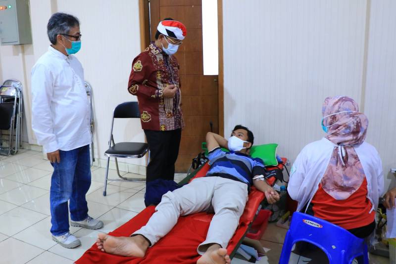 Wakil Wali Kota Tangerang H. Sachrudin didampingi Camat Periuk Maryono sambangi kegiatan donor darah yang yang bertempat di Kelurahan Sangiang Jaya Kecamatan Periuk, Minggu (31/1/2021).