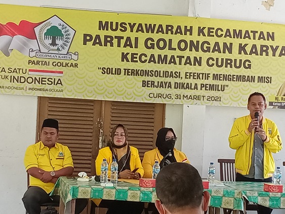 Ia juga memberikan pesan kepada Ketua Pengurus Pimpinan Kecamatan (PK) Partai Golkar Kecamatan Curug terpilih Ade Suminar, agar segera melaksanakan musyawarah Kelurahan tiga bulan ke depan setelah Kepengurusan ditingkat Kecamatan Periode 2021-2026 selesai di lantik.